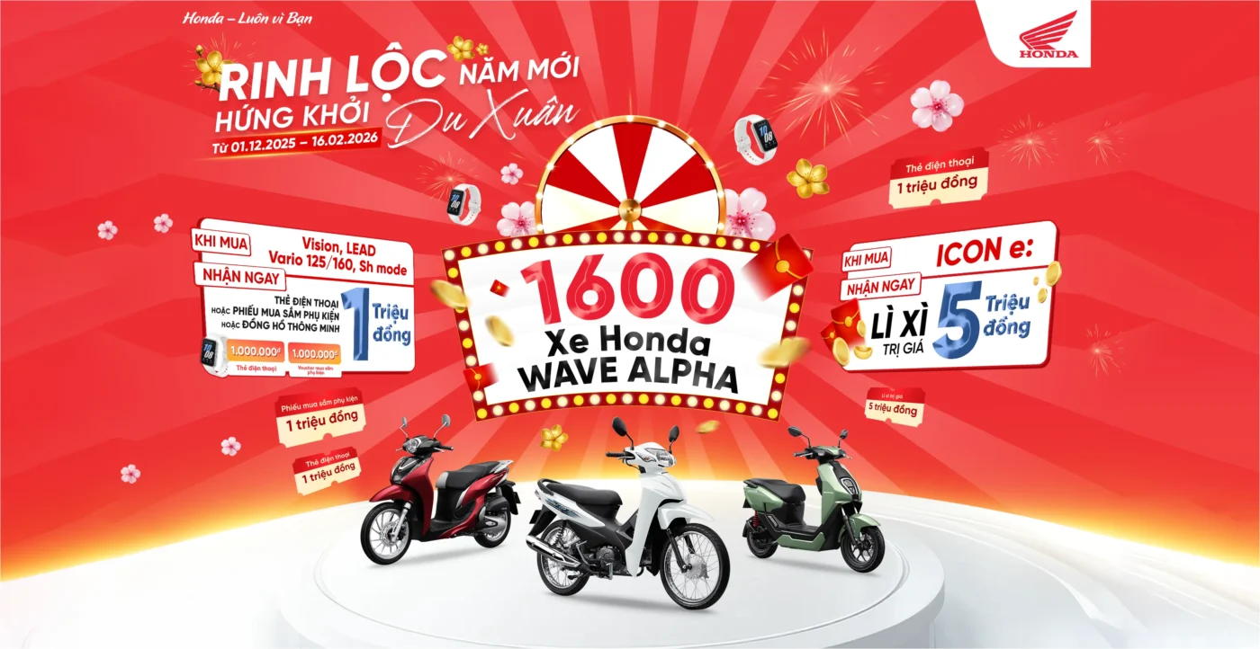 xem thêm...Khuyến Mãi Xe Honda Đón Tết 2026: Trúng Wave Alpha, Trợ Giá Đến 6 Triệu Đồng Cùng Hoàng Việt